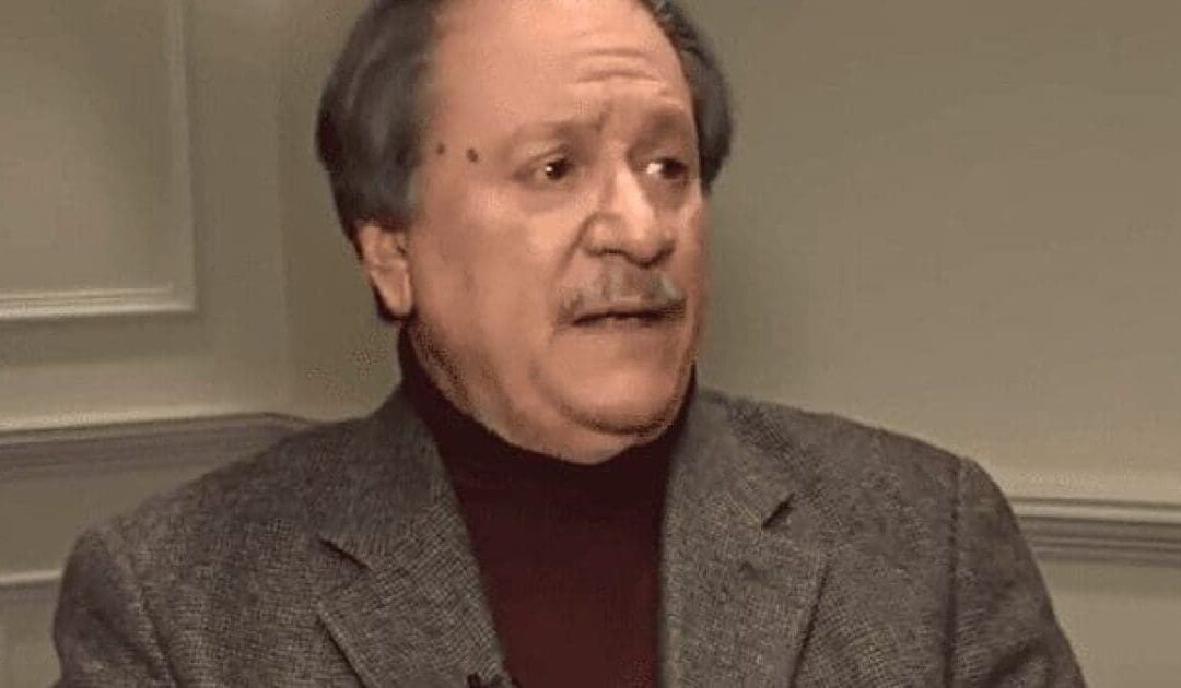 Man in a gray blazer and dark turtleneck speaking during an interview, conveying a serious expression in an indoor setting.