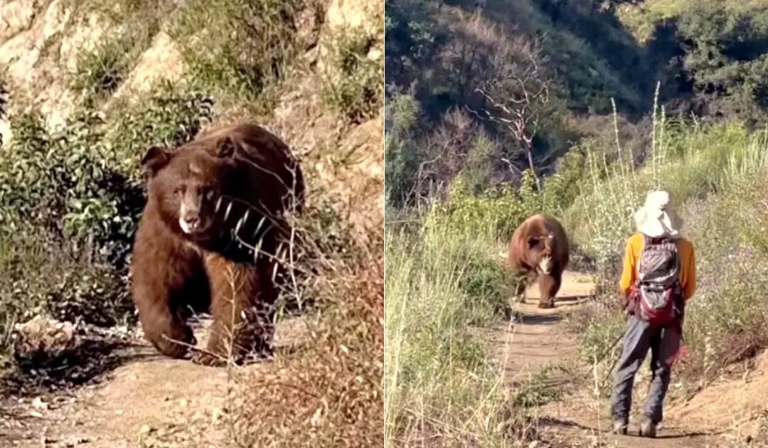 Yesterday (22), a terrifying video surfaced showing a massive brown bear charging toward a hiker in California’s Angeles National Forest.